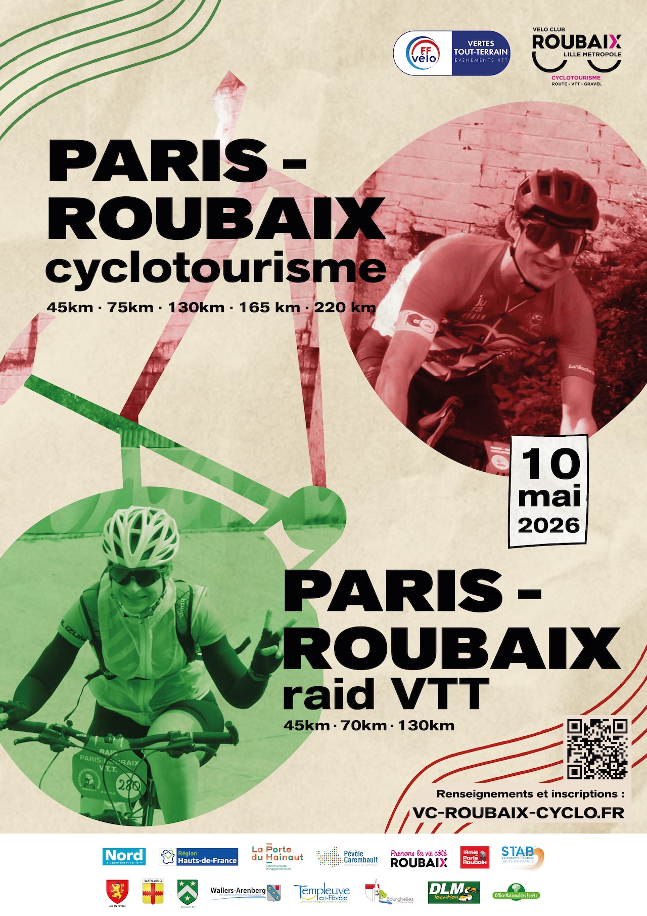 Tous les départs seront donnés depuis Vélodrome André‑Pétrieux (Stab Vélodrome), pour des circuits en boucle. Cette formule, déjà testée avec succès lors du Raid VTT 2025, permet une logistique plus fluide et une expérience encore plus immersive pour les participants. Pour les plus longues distances, ce nouveau format ne change rien à l’ADN de l’épreuve : l’authenticité, l’exigence et la confrontation aux célèbres pavés du Nord sont toujours au rendez-vous.